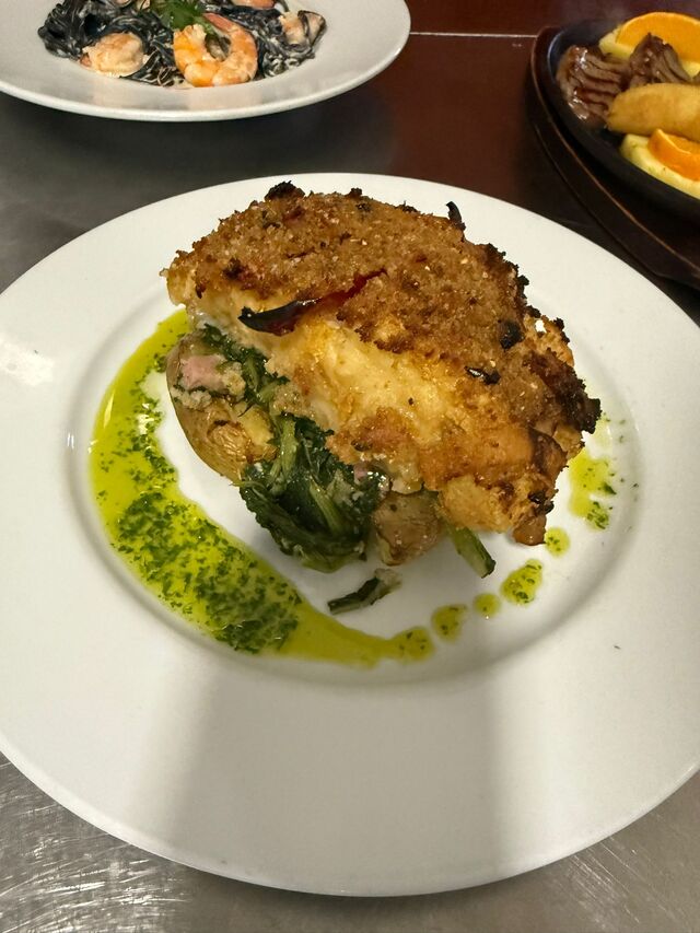 No Restaurante Coral, a cozinha combina a tradição portuguesa com influências mediterrânicas, oferecendo uma carta diversificada que contempla mariscos, peixes frescos, pizzas e pratos regionais preparados com rigor.